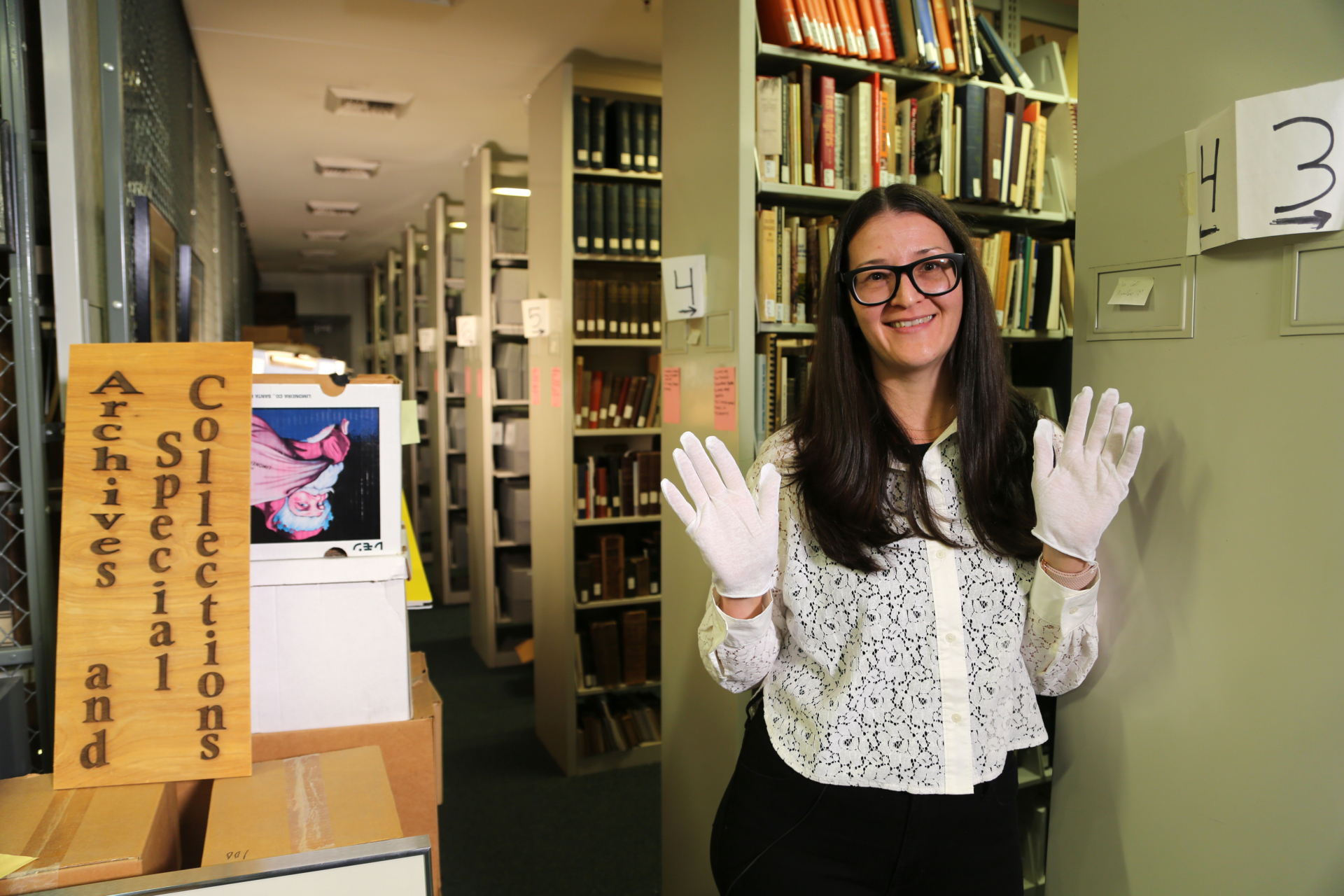Keren Darancette stands in the University of La Verne archives. (ULV Photo/Stephen Gee)
