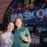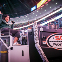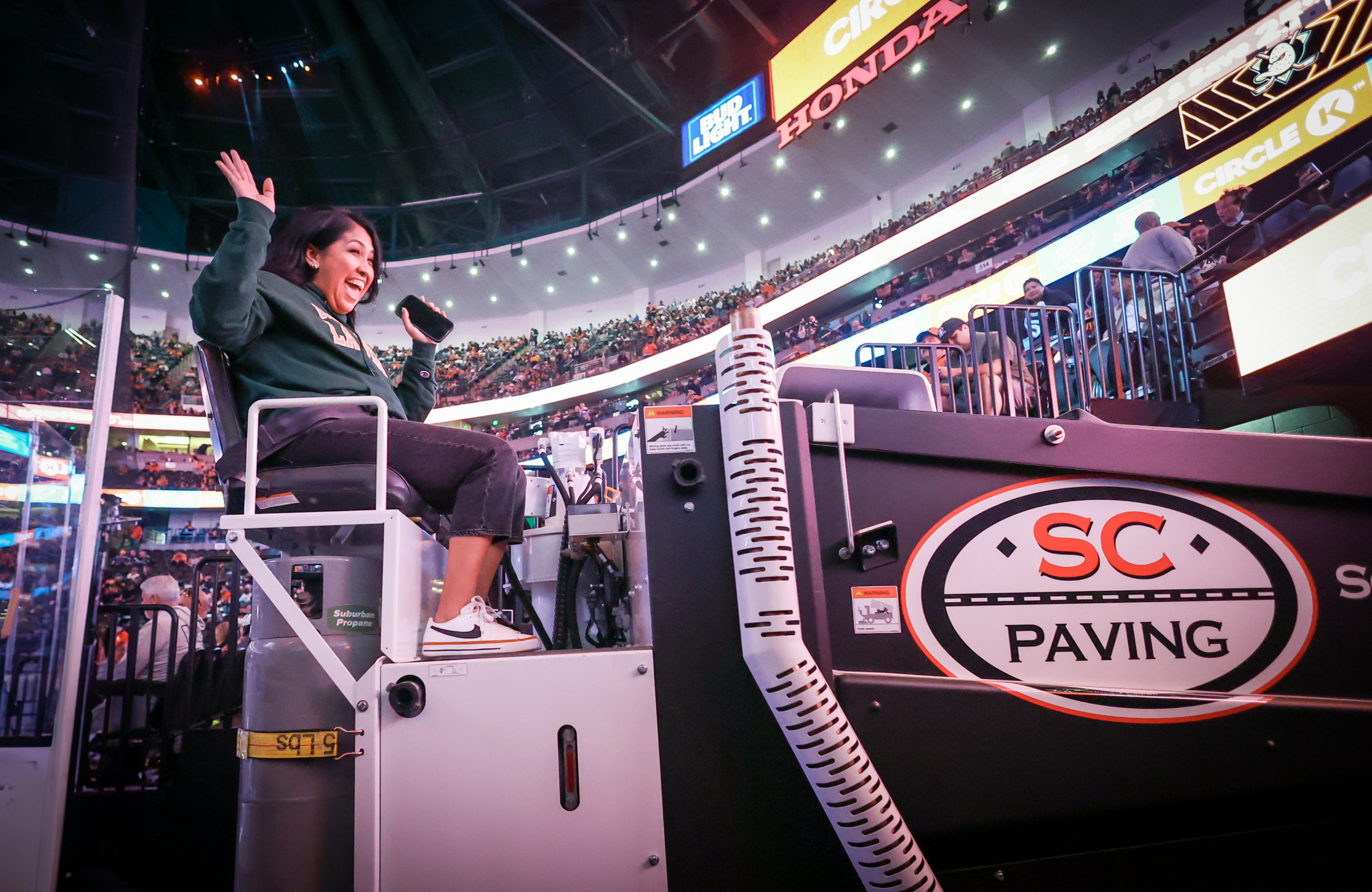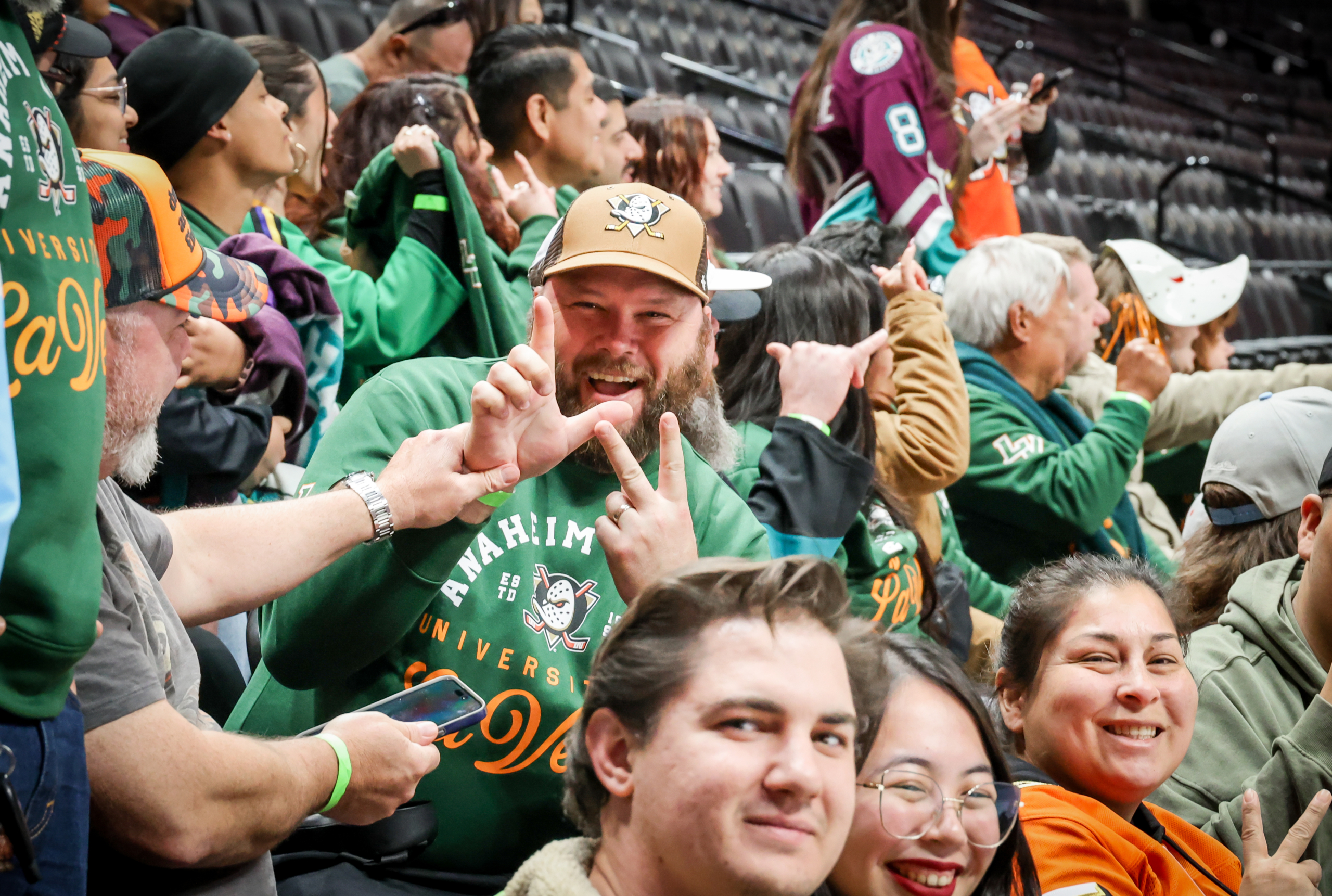 Students, alumni, faculty, and staff gather at Honda Center for a spirited evening of hockey, connection, and a chance to take a slapshot on NHL ice