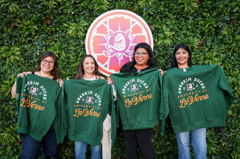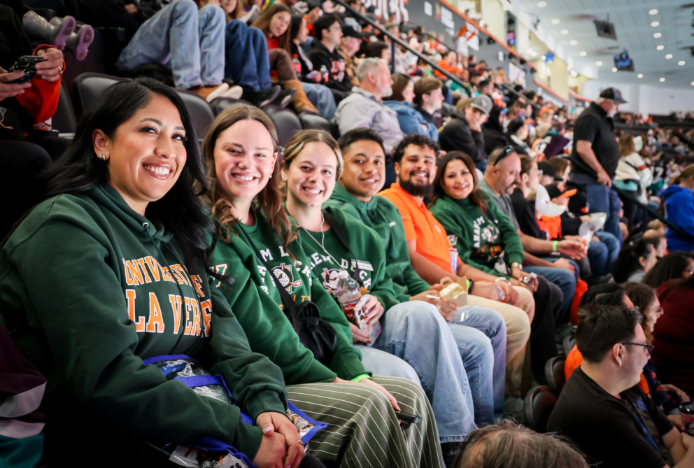 Members of the University of La Verne community gathered at the Honda Center last Sunday for a night of hockey as alumni, faculty, staff, and students came together to watch the Anaheim Ducks take on the St. Louis Blues. The event gave attendees a chance to connect while cheering on the action.