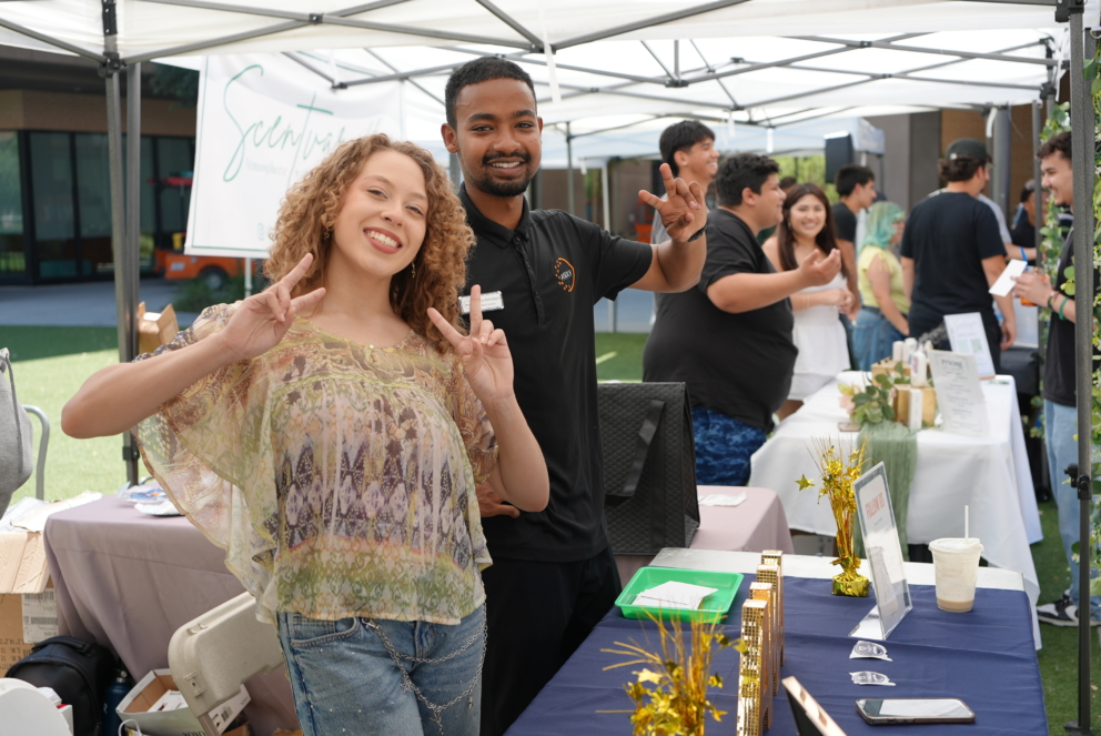 ULV College of Business undergraduate students turned Citrus Lawn, on the main campus, into a marketplace at the Integrated Business Curriculum (IBC) Mixer. The IBC program immerses students in entrepreneurship, guiding them through developing and launching companies, business plans, and marketing products, and driving sales. “This is a hands-on experience,” said College of Business senator and junior Nebiyu Semunigus. “This allows our IBC students to actually have a chance to sell on campus,” said co-president and senior Nicole Singer, noting the event also drew non-business majors. The mixer gave students a chance to connect with the campus community, build confidence, and gain experience that prepares them for professional careers.