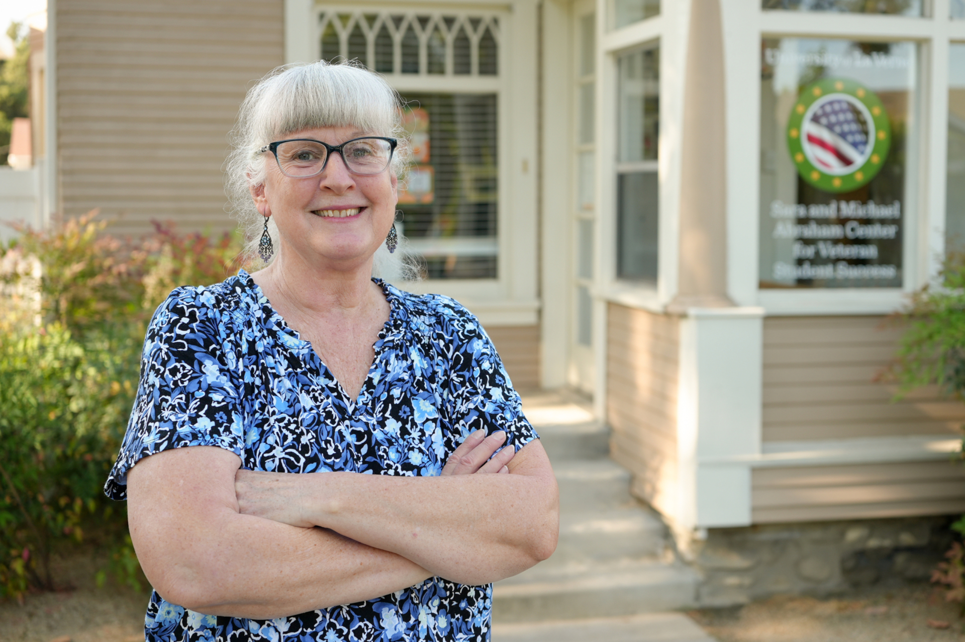 Outside the Abraham Center for Veteran Student Success, Diana Towles brings her own military experience to her role as a mentor and advocate. (ULV Photo/Claudia Gonzalez)